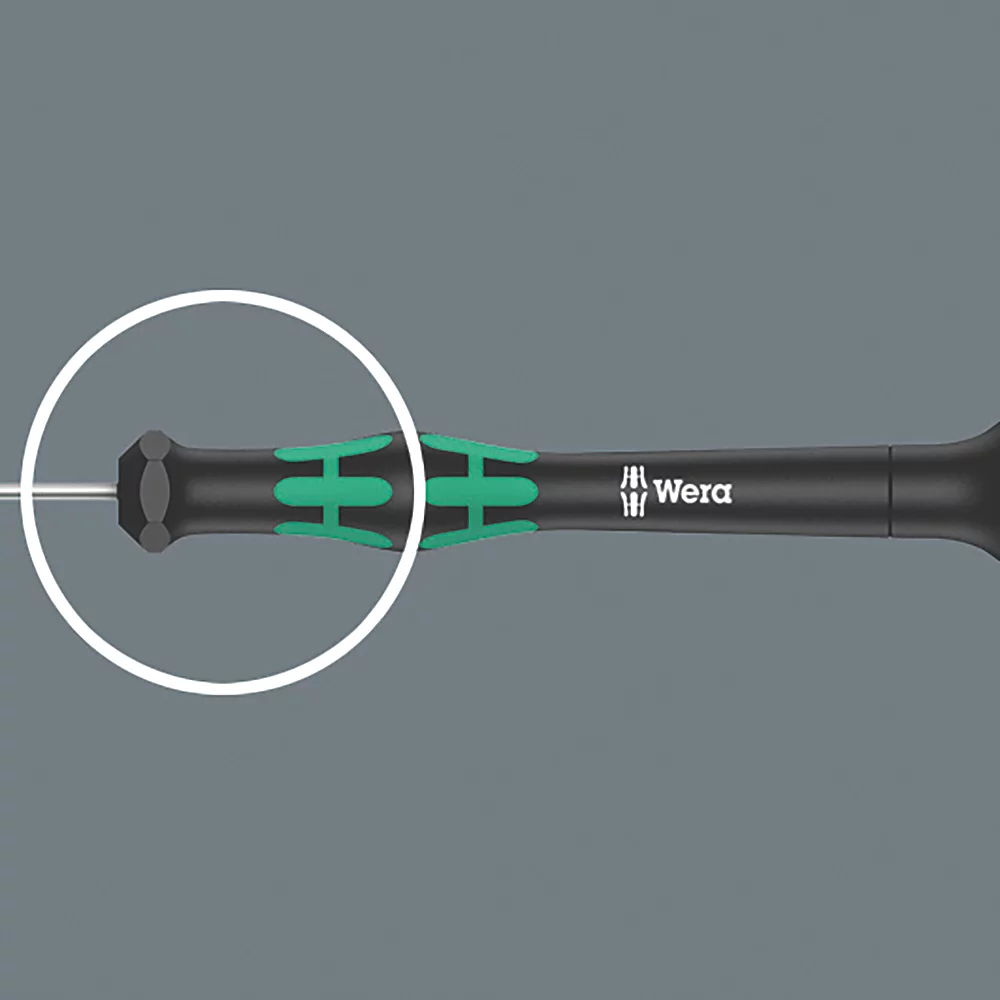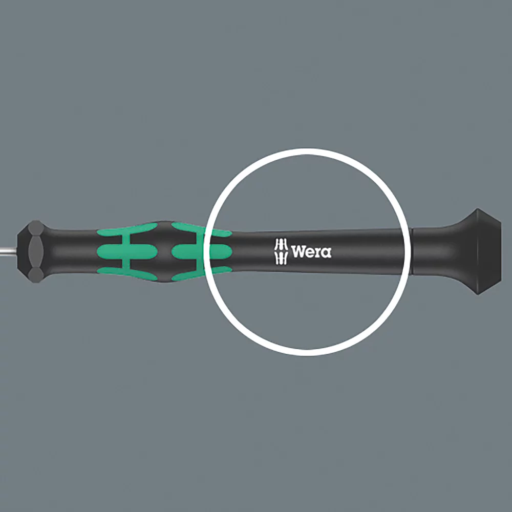 Assortiment de tournevis Kraftform Micro Wera pour les travaux de précision. Les manches de tournevis Kraftform Micro présentent différentes zones : rotation rapide, puissance et précision. La zone de rotation rapide, sous l’embout rotatif, permet de tourner rapidement et de travailler vite. La zone de puissance, dotée de zones souples intégrées près de la pointe de la lame, garantit un transfert de couple élevé lors du desserrage ou du serrage des vis. La zone de précision, située juste au-dessus de la lame, permet à l’utilisateur de trouver le bon angle de rotation lors de travaux de réglage précis. Les manches Kraftform Micro disposent également de la technologie Rapidaptor, pour un changement rapide des embouts et un travail ergonomique. Pour les électriciens, les opticiens, les mécaniciens de précision, les bijoutiers ou les installateurs informatiques.