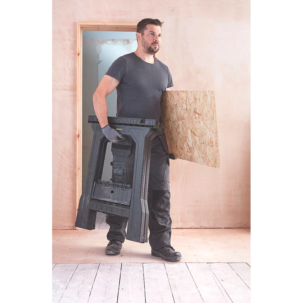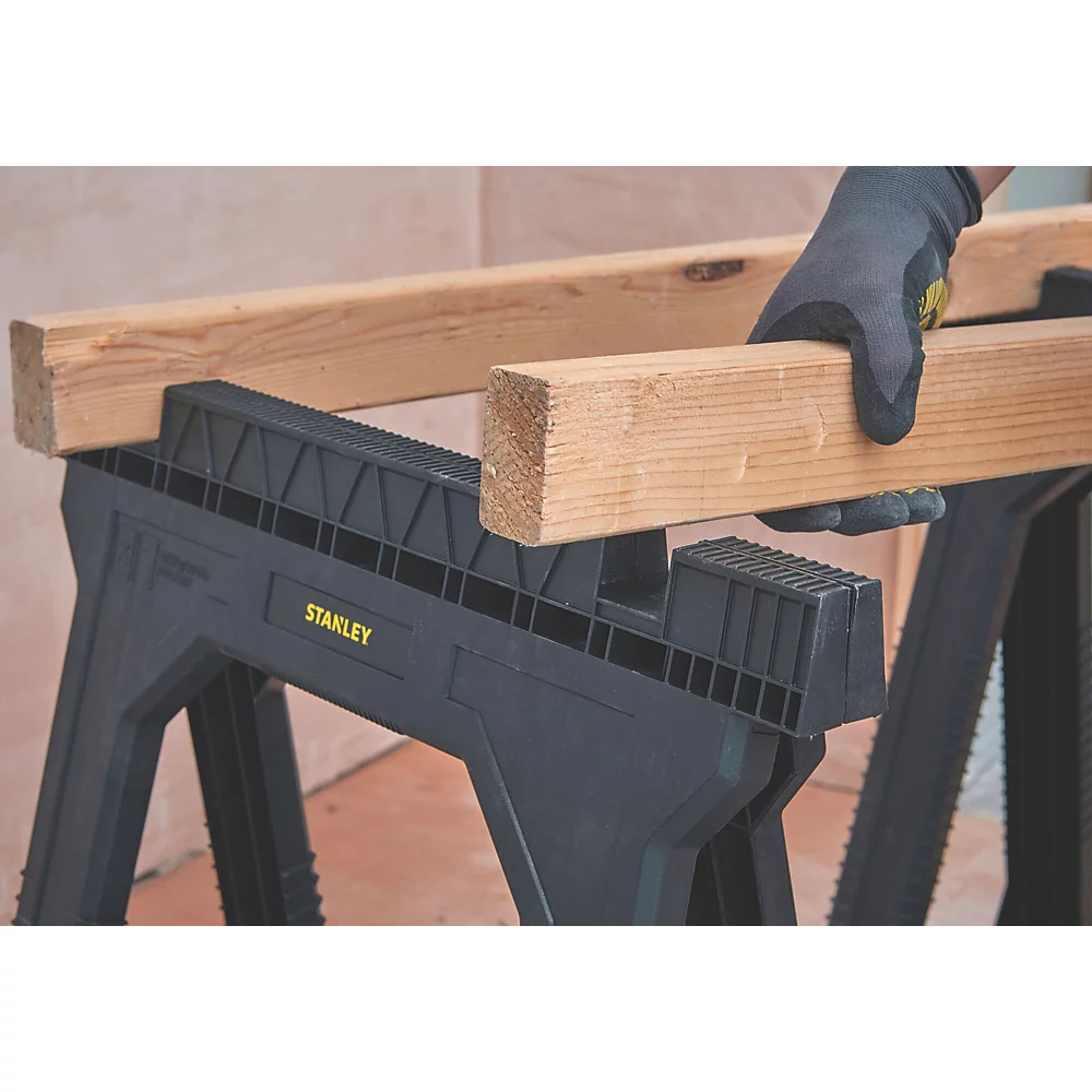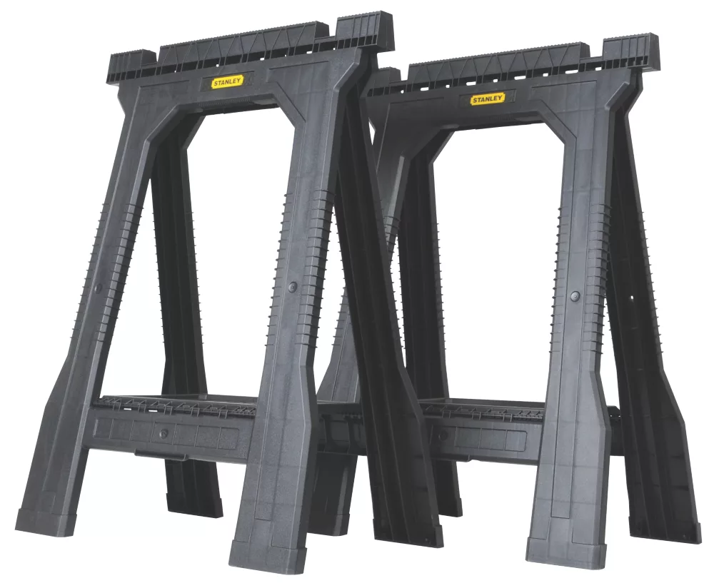 Chevalets de sciage légers et résistants. Surface antidérapante pour maintenir la pièce pendant l’utilisation et pieds en caoutchouc antidérapants pour une stabilité accrue. La rainure en V supplémentaire sur le dessus permet de maintenir les petits objets et les éléments ronds comme les tuyaux. Se replient à plat pour faciliter le transport et le rangement. Plateau pour outils inclus.