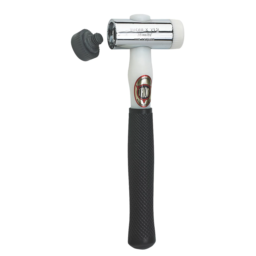 Marteau multi-usage doté d’une table blanche dure et d’une table grise souple. Capable de réaliser des coups fermes tout en limitant les dommages sur les éléments frappés. Les tables sont conçues pour s’user et peuvent être remplacées à la main. Manche en plastique résistante à l’usure, sûr et sécurisé.
