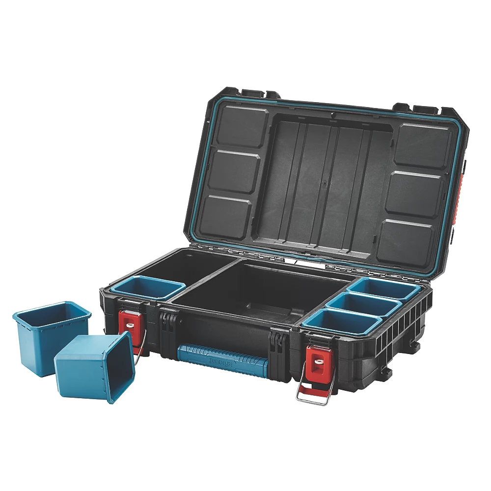 Organiseur compact et durable avec verrous en résine et 3 poignées pour plus de commodité. Les 6 compartiments amovibles et les 2 séparateurs permettent d’accéder rapidement au contenu tout en offrant un espace généreux pour les accessoires pour outils de petite à moyenne taille. Joint étanche. Peut être connecté à d’autres produits de la gamme Connecx.