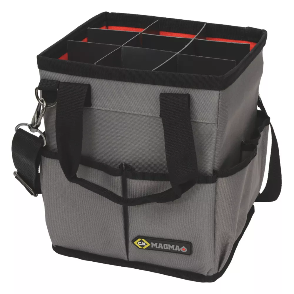 Sac fourre-tout 3-en-1 en polyester résistant pour un accès facile aux outils. Fourni avec une base amovible facile à nettoyer, une bandoulière rembourrée et une doublure intérieure rouge vif pour une meilleure visibilité des objets rangés. Pliable à plat pour un rangement compact.