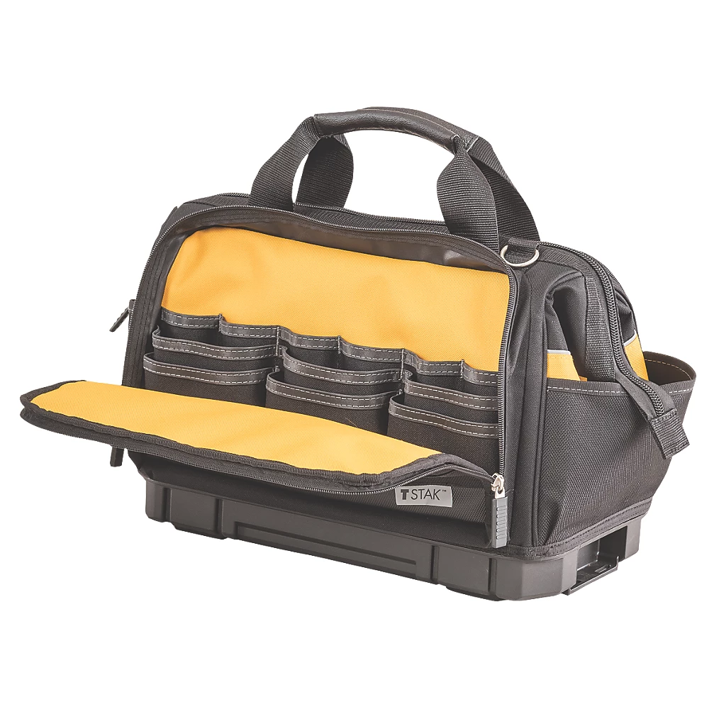 Sac à outils TSTAK en tissu, pour une organisation aisée des outils. Tissu maille mélangé pour une durabilité et une durée de vie accrues. La base en plastique protège le sac et son contenu lorsque le sac est posé sur un sol humide ou sale. La bandoulière rembourrée offre un confort optimal lors du transport de charges lourdes. Raccord possible avec le système de rangement modulaire TSTAK. Capacité de charge 30kg.