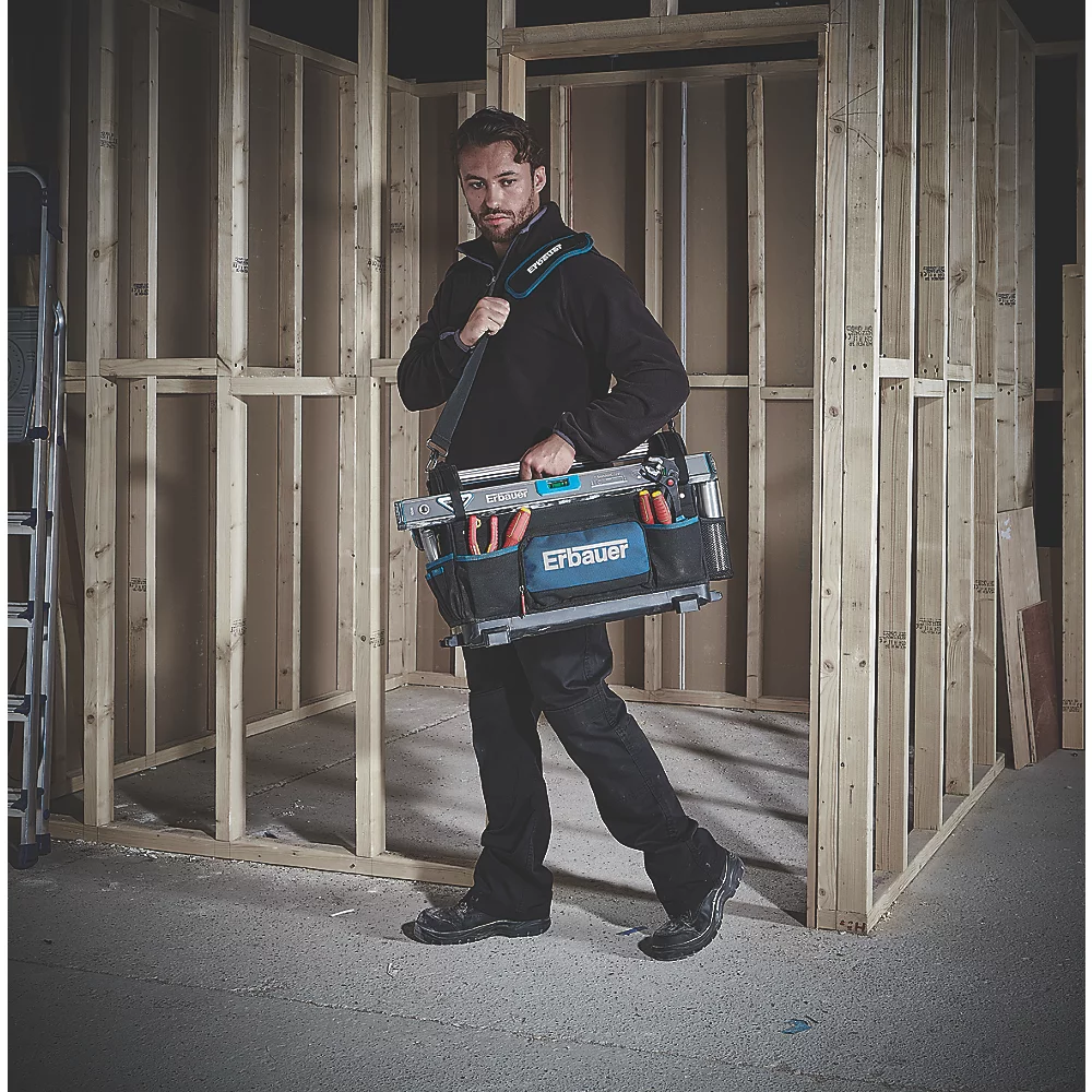 Conçu pour résister aux environnements de travail difficiles, la sacoche Erbauer ConnecX a été pensée pour les professionnels. Sa capacité de rangement extra-large et sa capacité de charge élevée permettent de transporter et de ranger les outils en toute sécurité. Sa conception empilable permet de le fixer en toute sécurité sur le système de rangement d’outils Erbauer ConnecX pour de meilleures possibilités de personnalisation. Fabriqué dans un matériau 1200 deniers durable, présente une base imperméable pour protéger les outils.