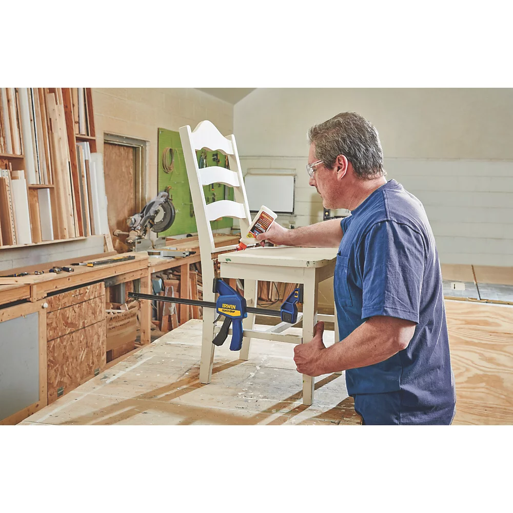 Serre-joint et écarteur robustes à l’ergonomie améliorée pour plus de confort, mécanisme à vis à changement rapide pour un maintien plus ferme du mors. Fort d’une capacité de charge de 135kg, ce serre-joint amélioré offre des performances de pointe lors des travaux de collage et de serrage. Changement rapide et sans outil du mode serrage au mode écartement. Les patins à face pleine répartissent la pression uniformément, tandis que le pied de support permet au serre-joint de rester parallèle. Utilisation à une main.