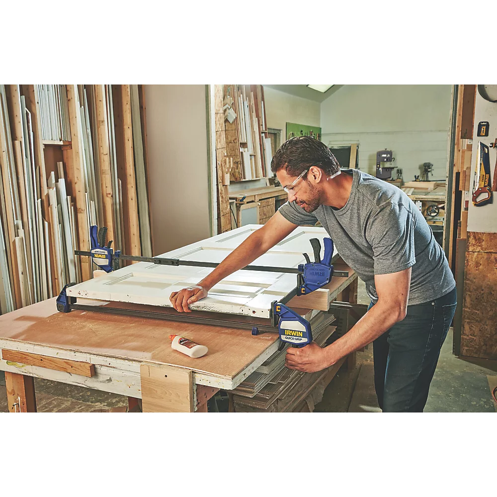 Ce serre-joints haute résistance utilisable d’une seule main est doté d’un bouton de changement rapide pour une conversion rapide et sans outil en écarteur. Les patins non marquants sur toute la face répartissent uniformément la puissance de serrage soutenue. Le pied réglable offre un soutien supplémentaire, ce qui permet au serre-joints de s’installer à la verticale sur une table ou une surface de travail. Idéal pour les applications intensives comme l’installation, la démolition et le collage grossier.